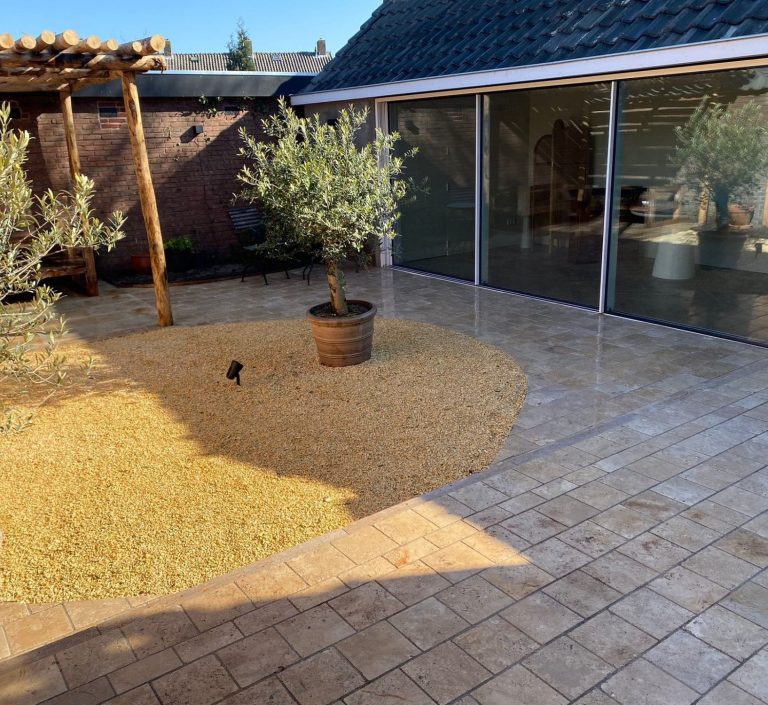 Visser-Tuinen is ook ervaren in verwerking in cementmortel, wat ideaal is voor een duurzame en stabiele afwerking. Daarmee realiseren wij ook prachtige Mediterrane bestratingen die zorgen voor een warme en stijlvolle sfeer in uw tuin.